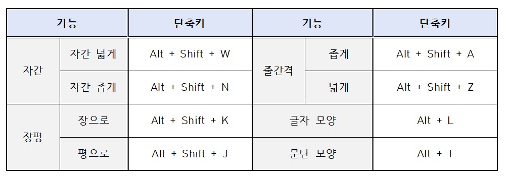 장평 단축키는 장으로 Alt + Shift + K / 평으로 Alt + Shift + J 입니다.