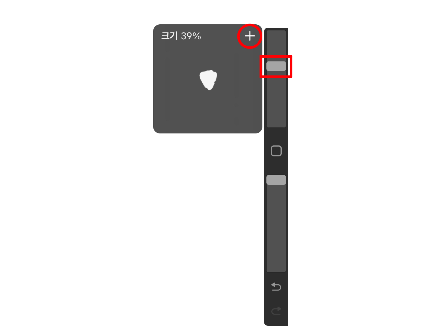 그러면 +표시가 -표시로 바뀌면서 슬라이드에 -가 생기며 브러쉬 크기가 저장됩니다.