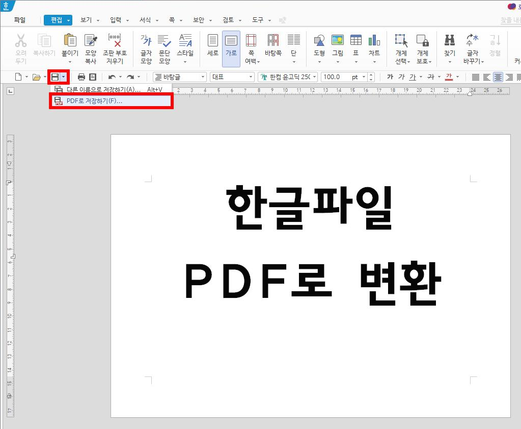 ◆ 한글파일 PDF파일로 저장하는 방법 1