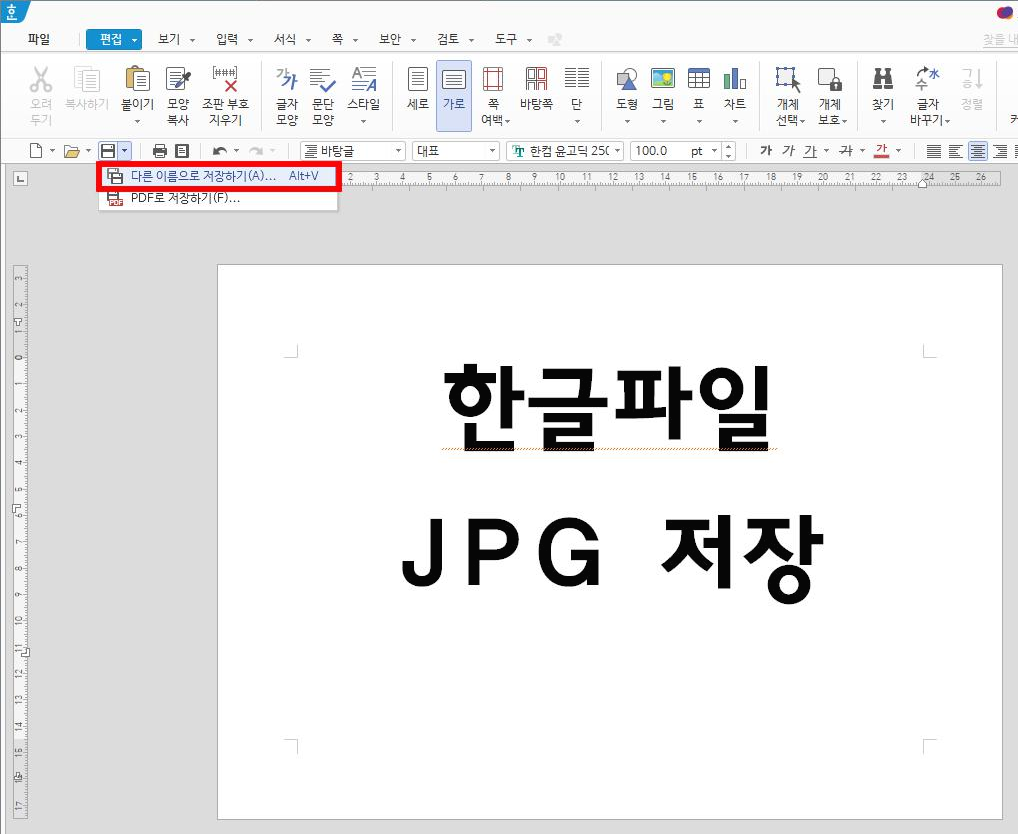 1. 저장 > 다른이름으로 저장하기를 클릭하거나 단축키 Alt+V를 눌러주세요.