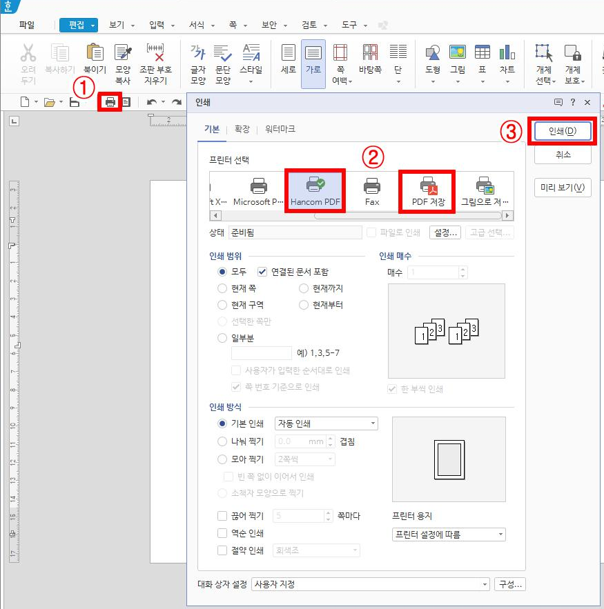 ◆ 한글파일 PDF파일로 저장하는 방법 3