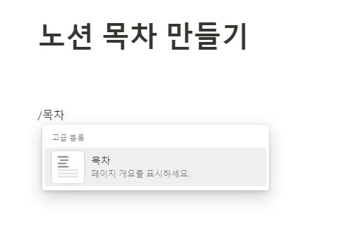 노션 목차 블록을 생성합니다.