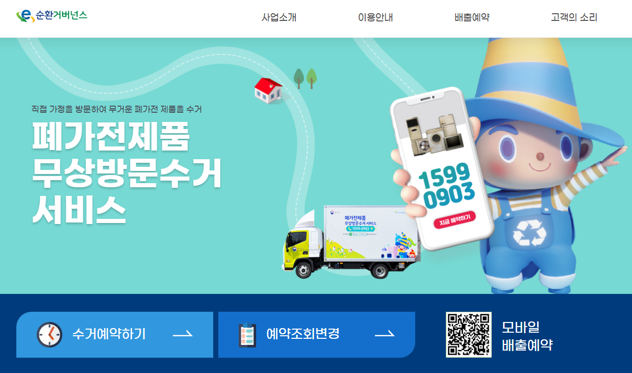 소형가전 뿐만 아니라 대형가전도 무상방문수거하고 있습니다. 자세한 내용은 사이트에 들어가셔서 확인해보세요.