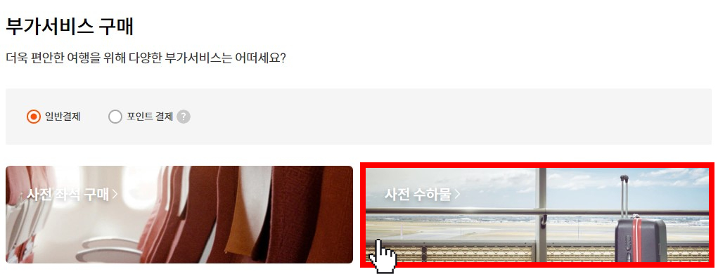 사전 수하물 구매는 첫 구간 출발 24시간 전까지 구매 가능하다고 합니다.