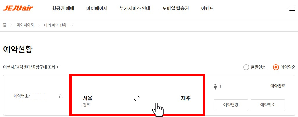 * 마이페이지 예약 현황에서 선택해도 됩니다.