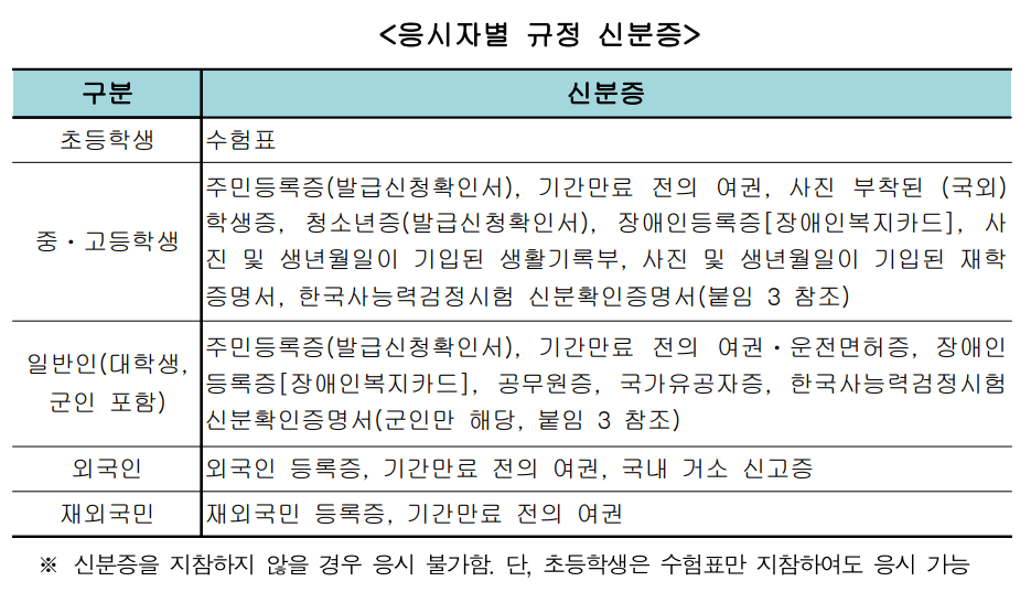 시험 당일에 필요한 준비물은 아래와 같습니다.