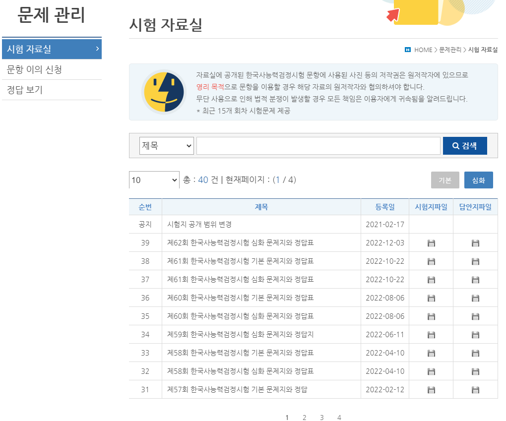 한국사능력검정시험 홈페이지 > 문제 관리 > 시험자료실