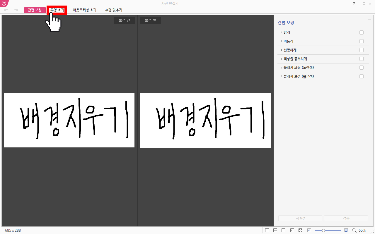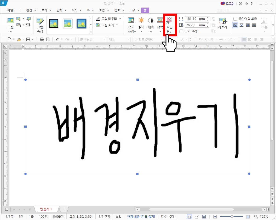 한글에서 사진 배경 지우는 방법