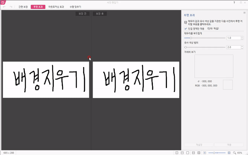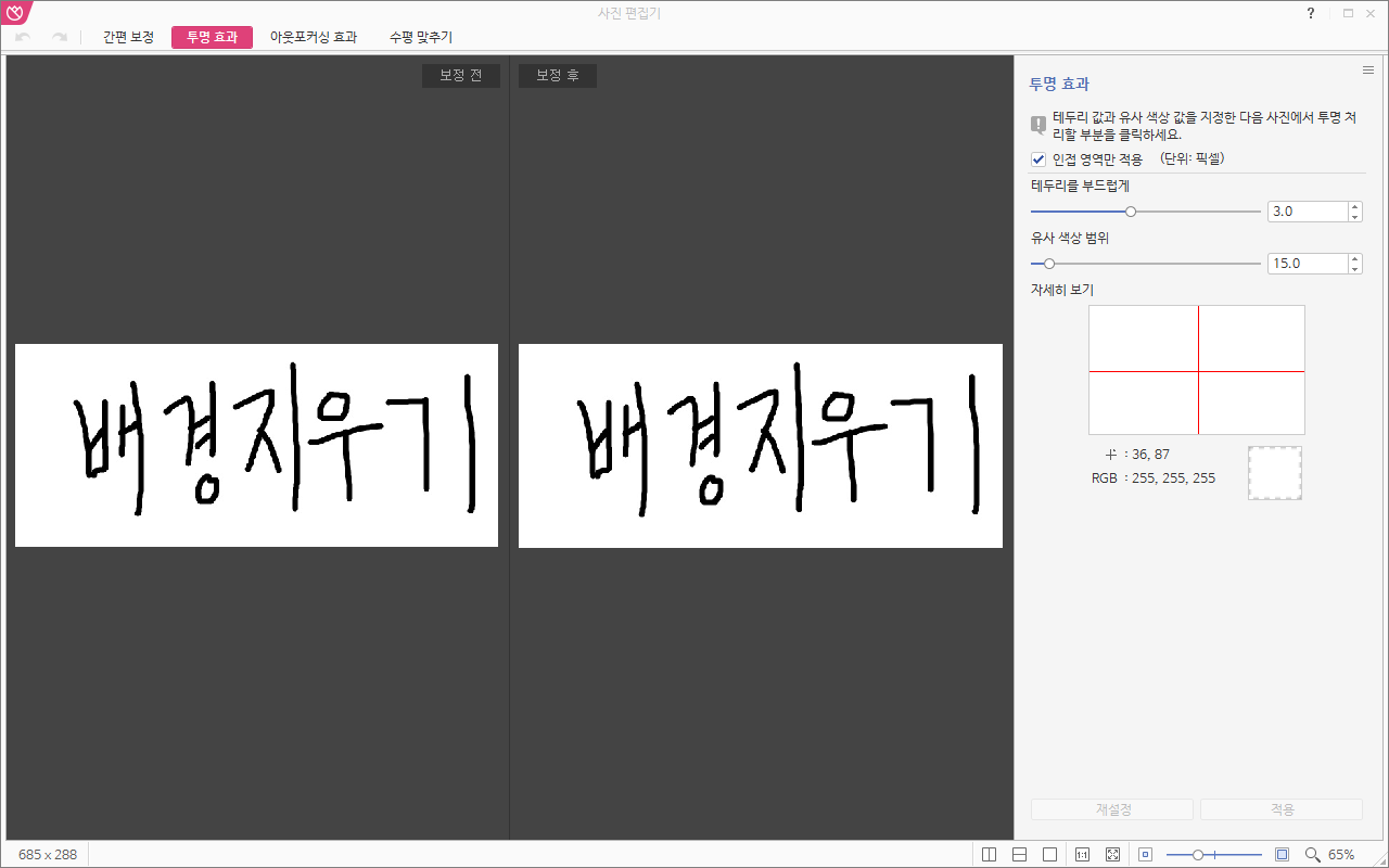 찾아보니 한글에도 사진 배경을 지우는 기능이있더라구요. 여태 헛짓을... 하는 생각도 들지만 이제라도 알아서 다행이라는 생각도 듭니다.