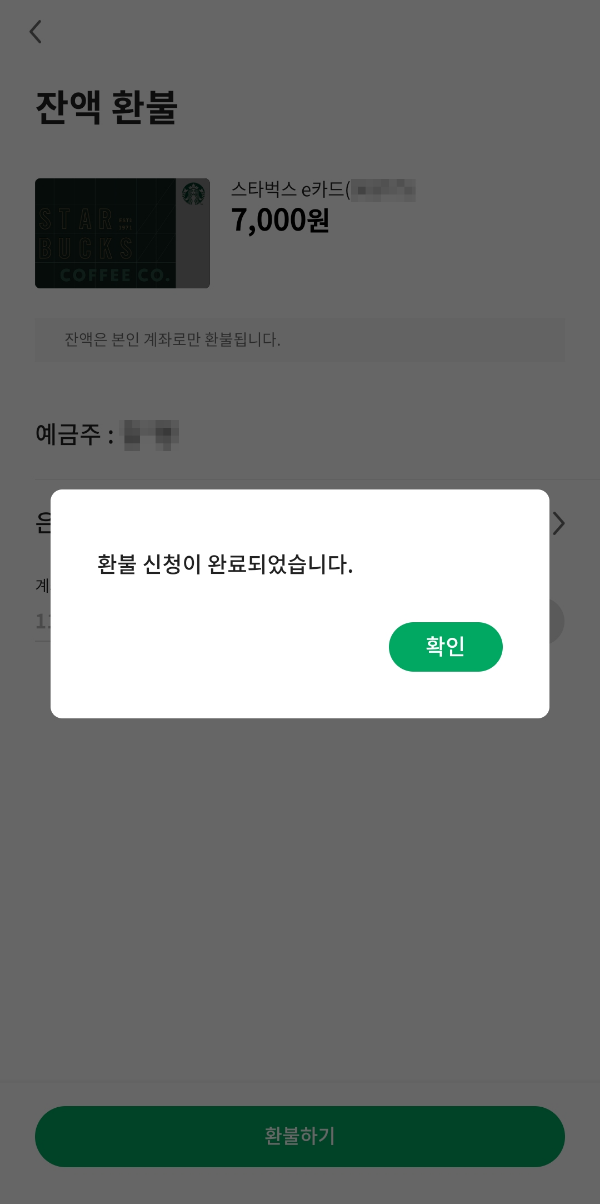 환불이 들어오면 얼마나 걸렸는지 글 수정하도록 하겠습니다. 이상 스타벅스 잔액 환불하는 방법이였습니다!