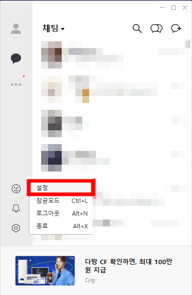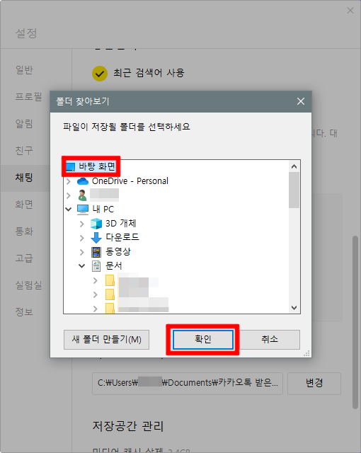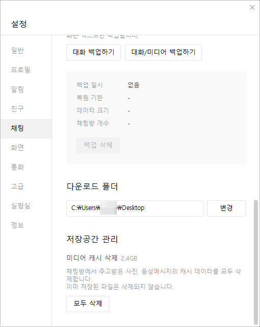카카오톡PC 다운로드 폴더 변경하기