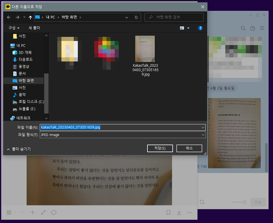 그런데 다른 프로그램의 저장위치는 다 바탕화면으로 해 놓고 카카오톡 PC만 안해놨더라구요. 저장을 할 때 마다 번거롭게 바탕화면으로 위치를 바꾸다가 이제서야 '아 저장위치를 바꾸면 되지?'라는 생각이 들었어요. 좀 늦긴 했지만 이제라도 바꾸는게 어딘가요. ㅎ