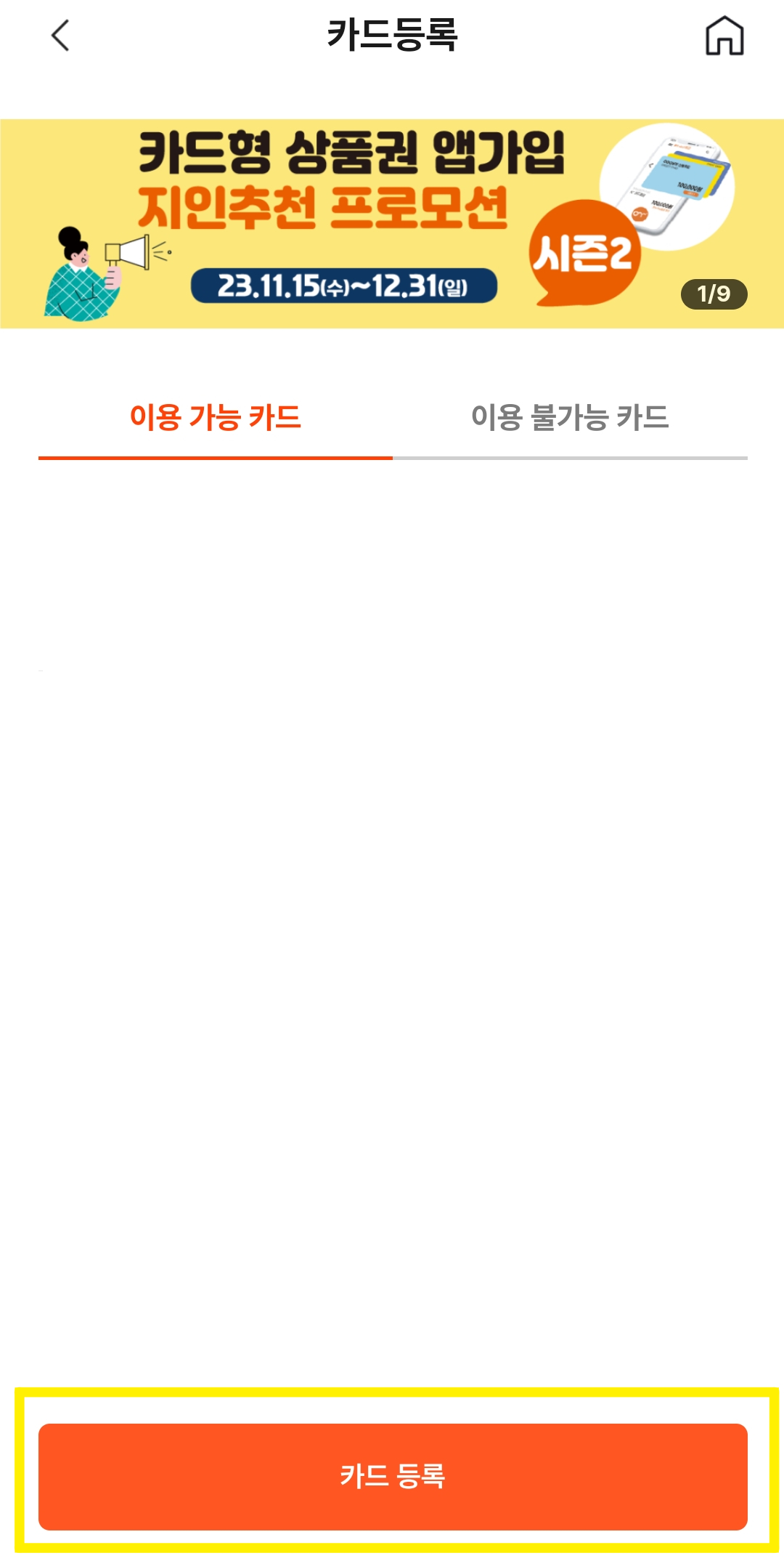 ※ 등록 불가 카드 : 기업(법인)카드, 가족카드, 기프트카드, 특수목적카드(바우처/지역화폐/보조금 전용카드 등) 및 참여 카드사별 기준에 따른 일부 카드
