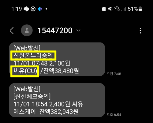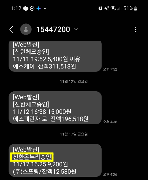 이제 등록한 카드를 가맹점에서 사용하시면 됩니다. 사용하면 이렇게 온누리승인 문자가 와요.
