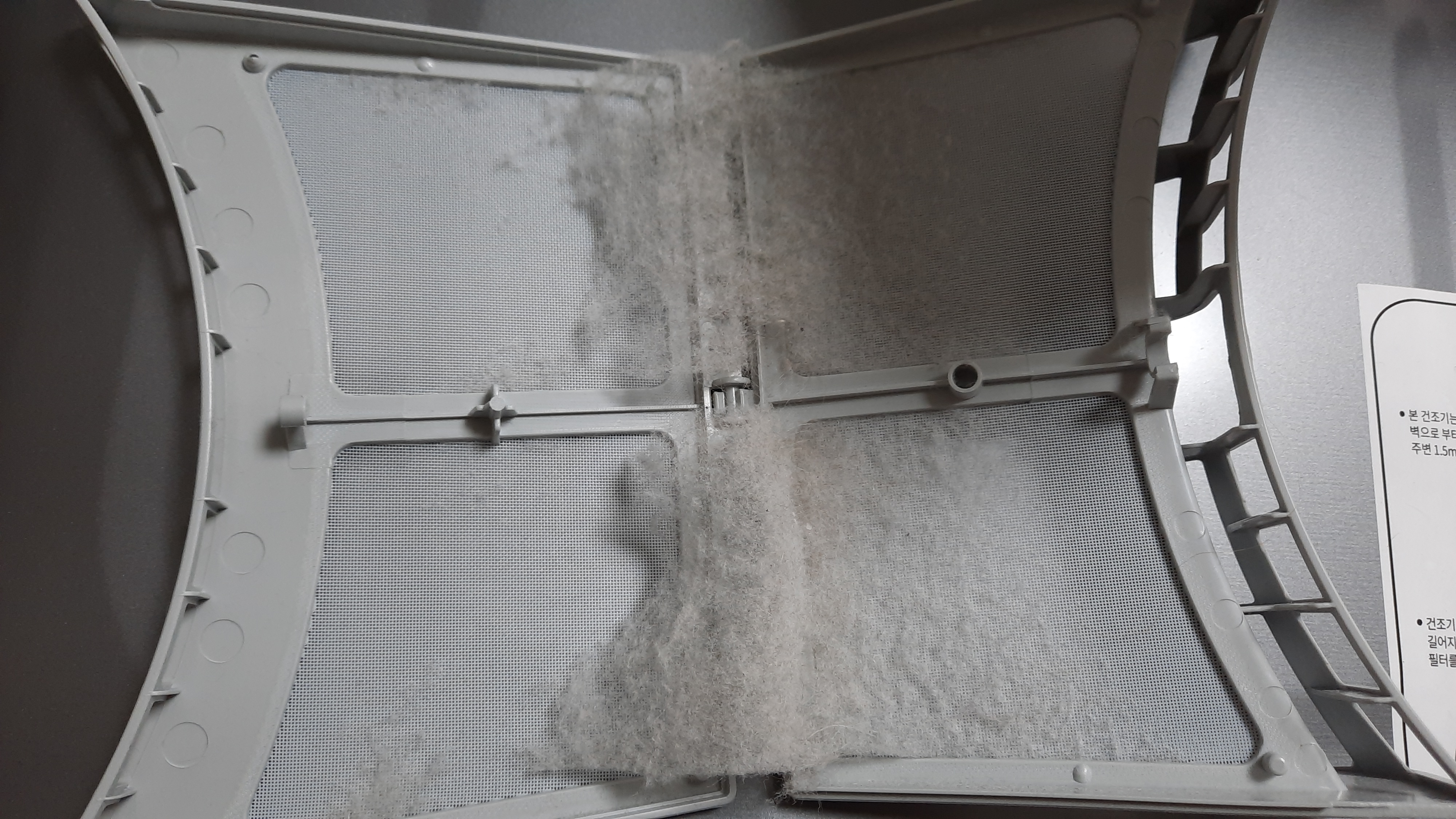 먼지도 이렇게 많이 나왔습니다. 건조기 필터 청소할 때 마다 제거된 먼지를 보면서 기분이 좋아지더라구요. 제가 비염이있어 먼지에 민감해서 그런가 봅니다. ㅎ