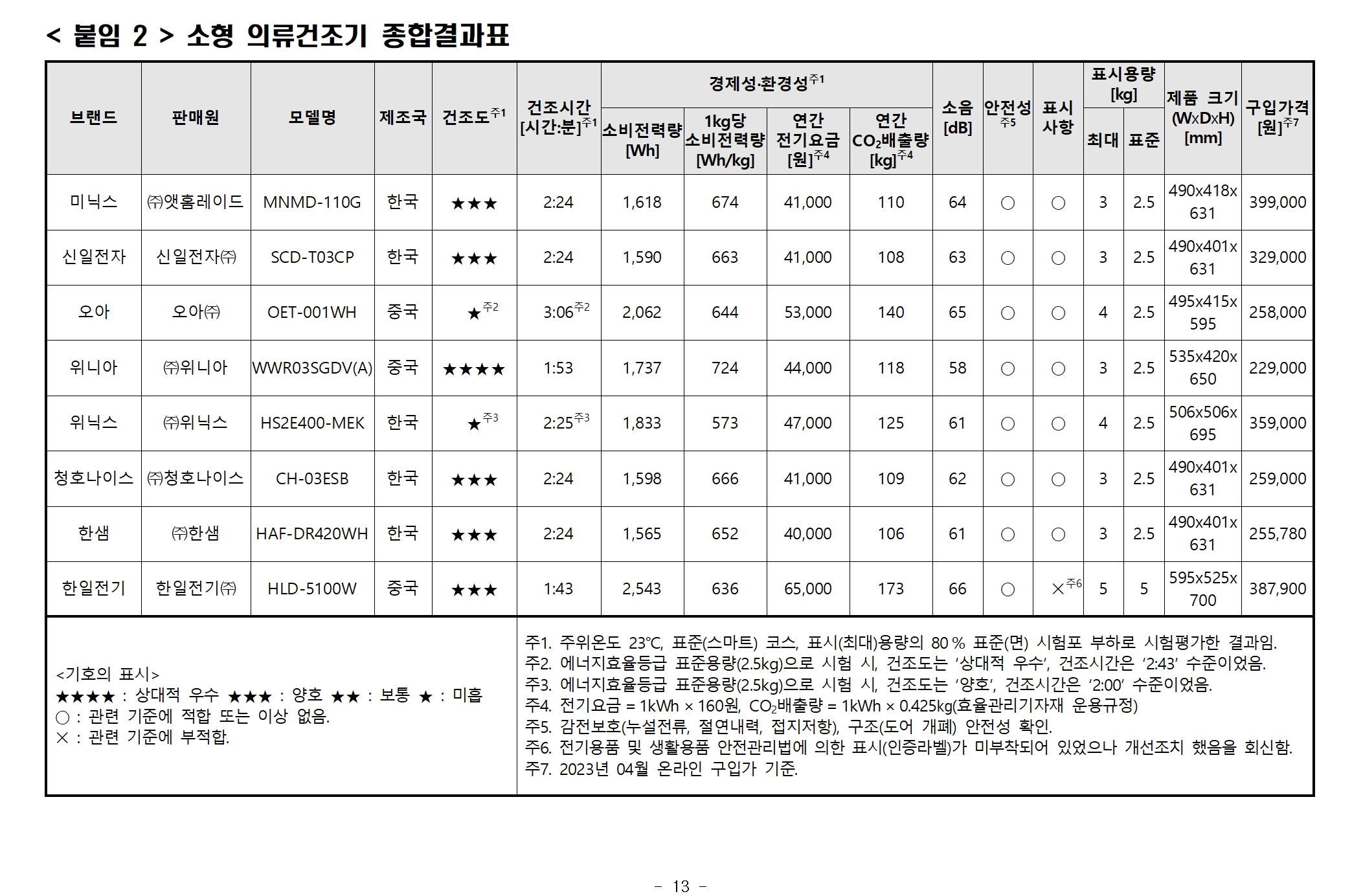 미니건조기를 알아보던 중 때마침 한국소비자원에서 소형 의류건조기를 대상으로 시험평가 결과를 공지한 것을 보게 됐습니다.