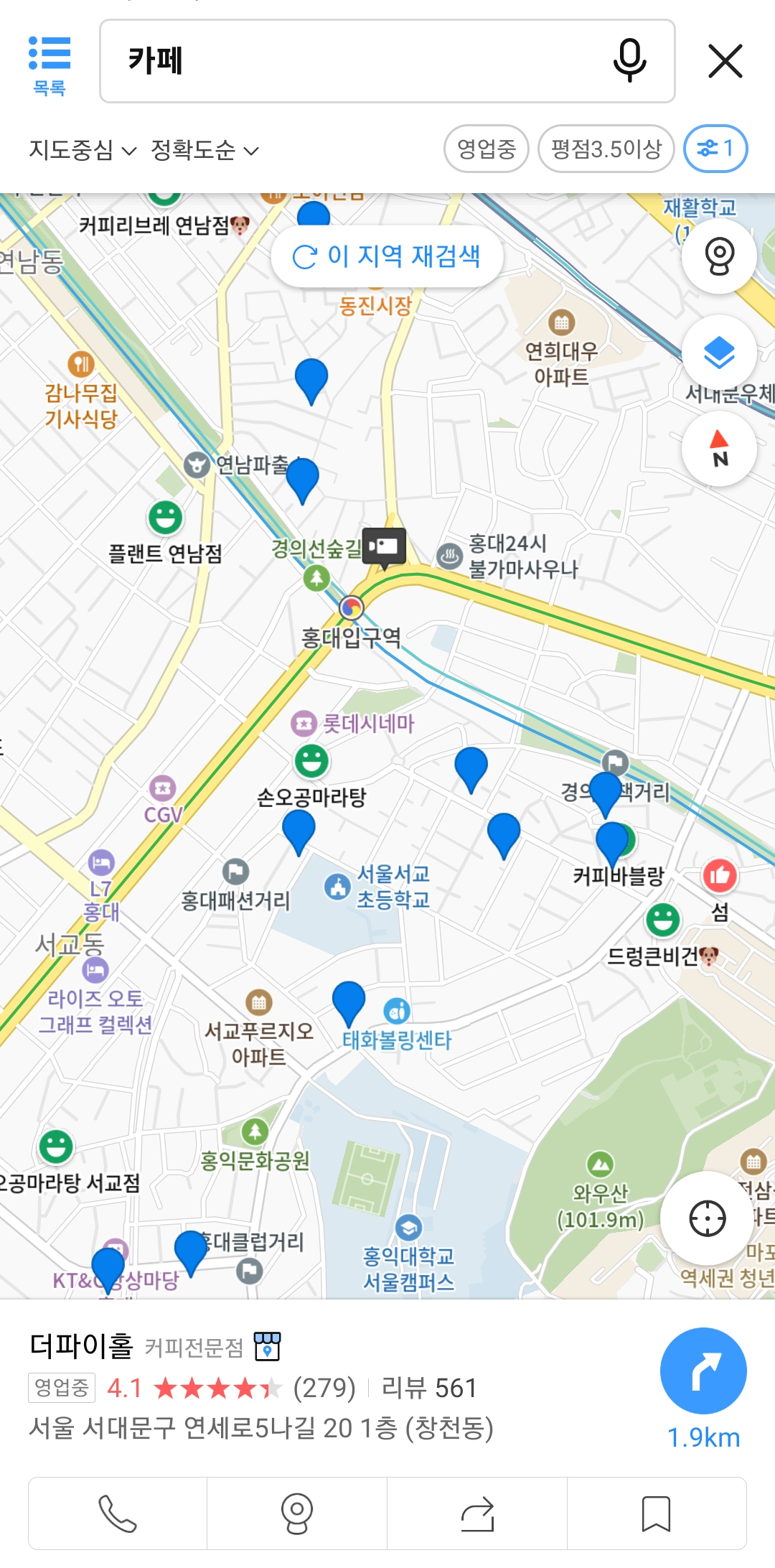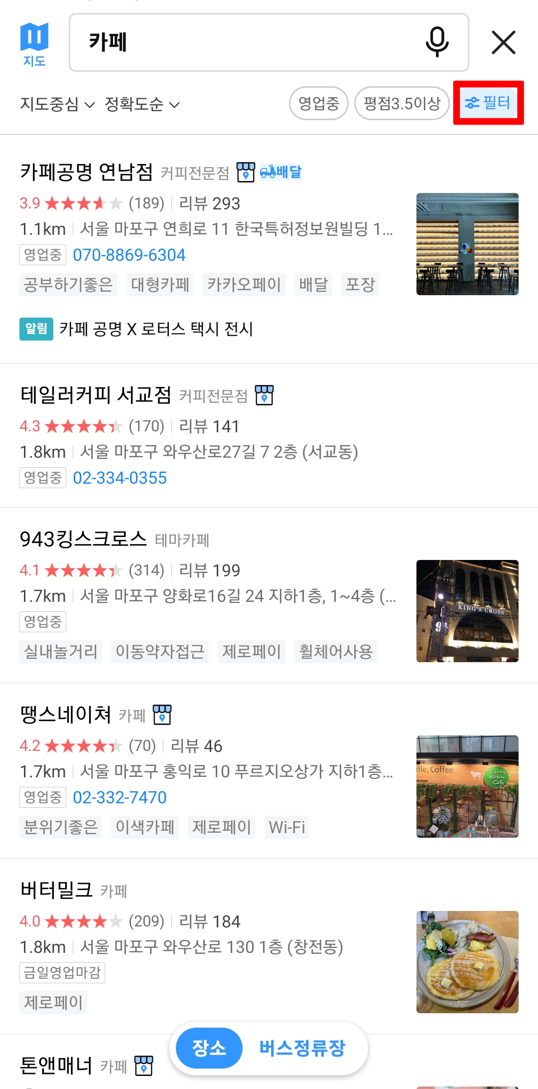 그러면 반려동물동반 카페를 확인할 수 있습니다.