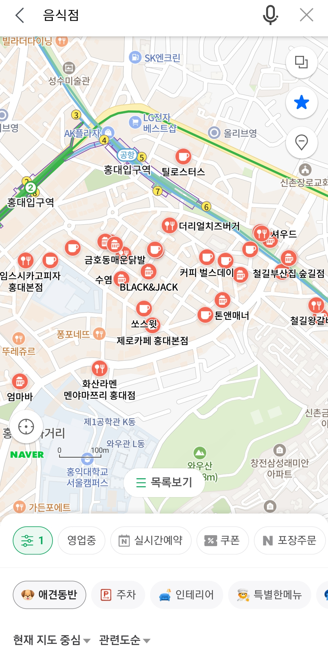 그런데 우연히 지도앱으로 반려동물동반 가능한 장소만 옵션으로 볼수 있다는 것을 알아서 정보를 공유하고 싶어서 글을 씁니다.