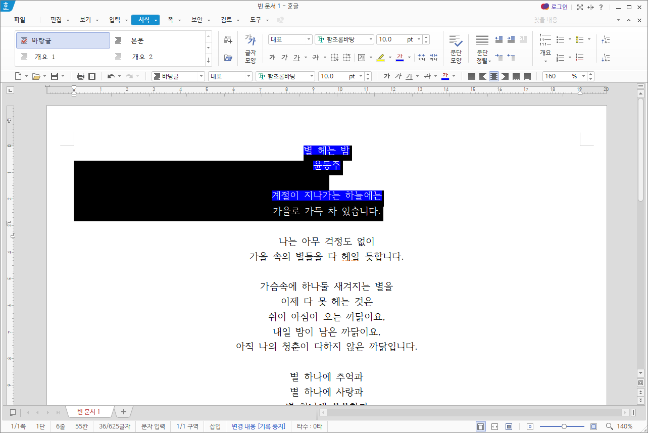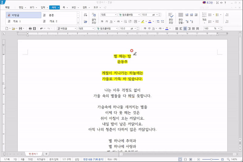 그리고 형광펜으로 칠하고 싶은 글씨를 드래그해주면 형광펜으로 칠해집니다.