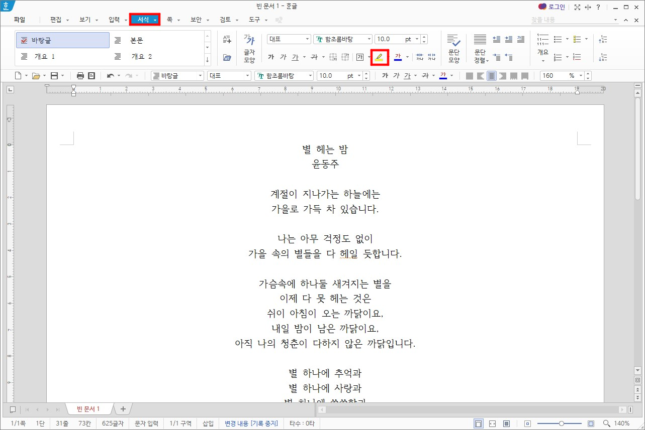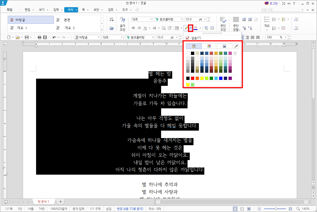 서식 > 형광펜을 선택합니다.