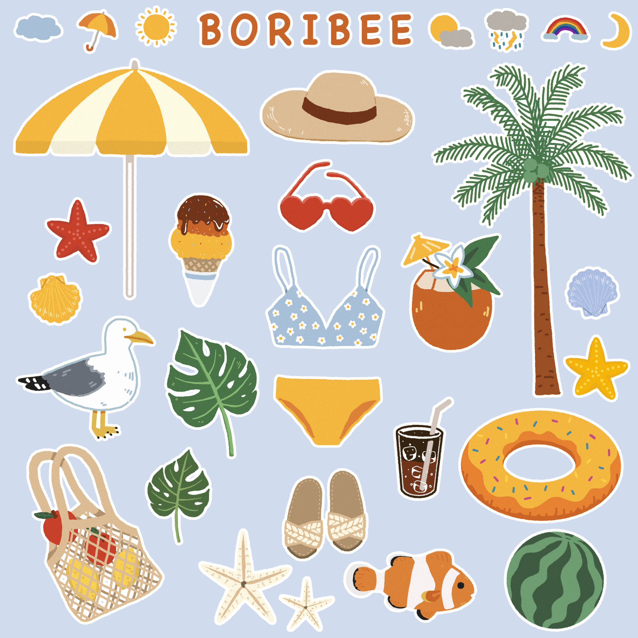 5월인데도 벌써 한여름이 생각 나는 날씨라 여름바다 스티커를 그려봤어요.