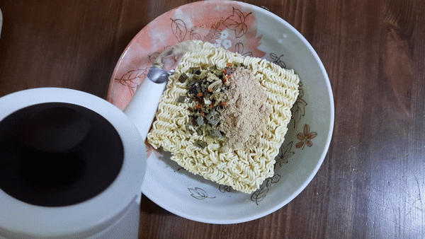 저는 물을 버리는 과정이 귀찮고 위험하기도 해 보통은 면, 건더기 스프, 분말 스프, 절반정도의 물을 넣고 돌립니다. 면이 물에 잠기지 않아 국물 라면 처럼 돌리면 면이 고루 익지 않으므로 시간을 1~2분 정도 짧게 돌리고 자주 뒤섞어 줍니다. 그래도 4~5분정도면 다 익습니다.