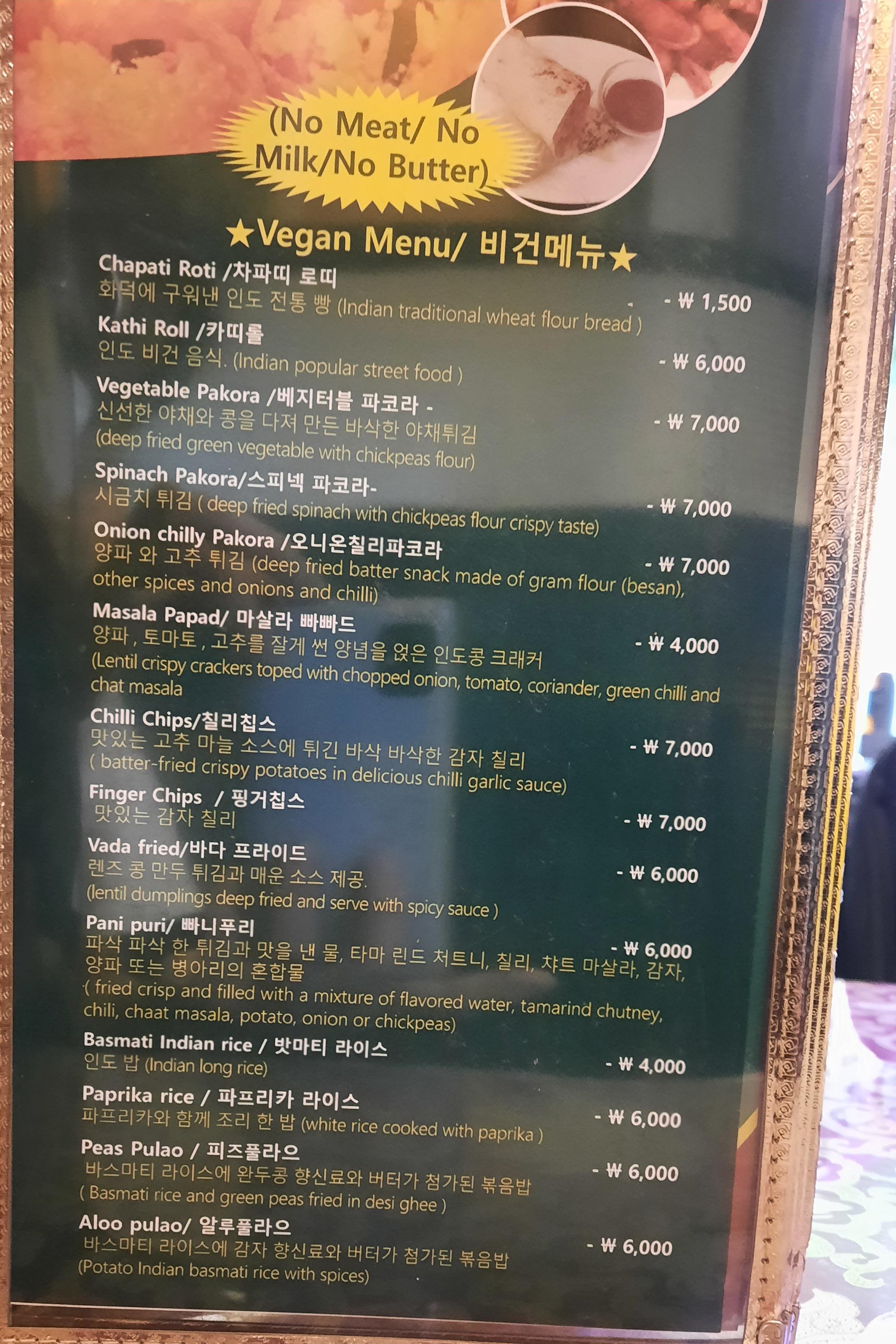 보통은 믹스베지터블이나 베지터블 빈달루를 먹는데 이번엔 커리 말고 다른 메뉴에 도전하고 싶어서 밧마티 브리야니와 카띠롤도 주문했습니다.