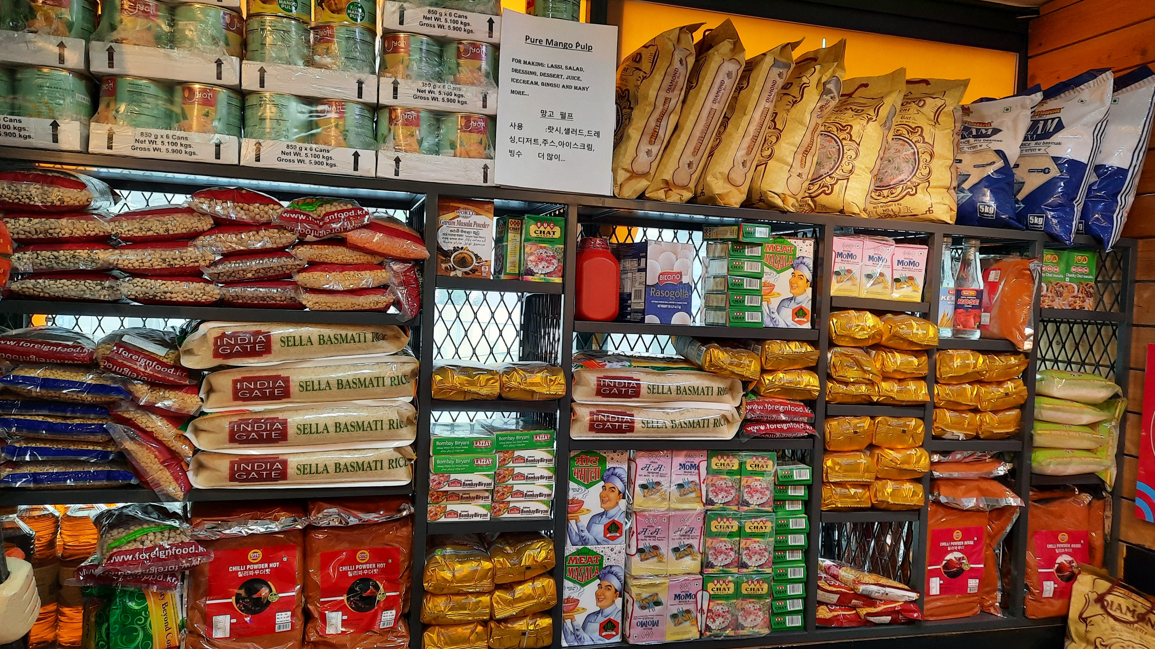 가게 입구에는 인도 식자재가 진열되어 있습니다. 생소하니 재밌어서 갈때마다 한번은 둘러보게 됩니다.