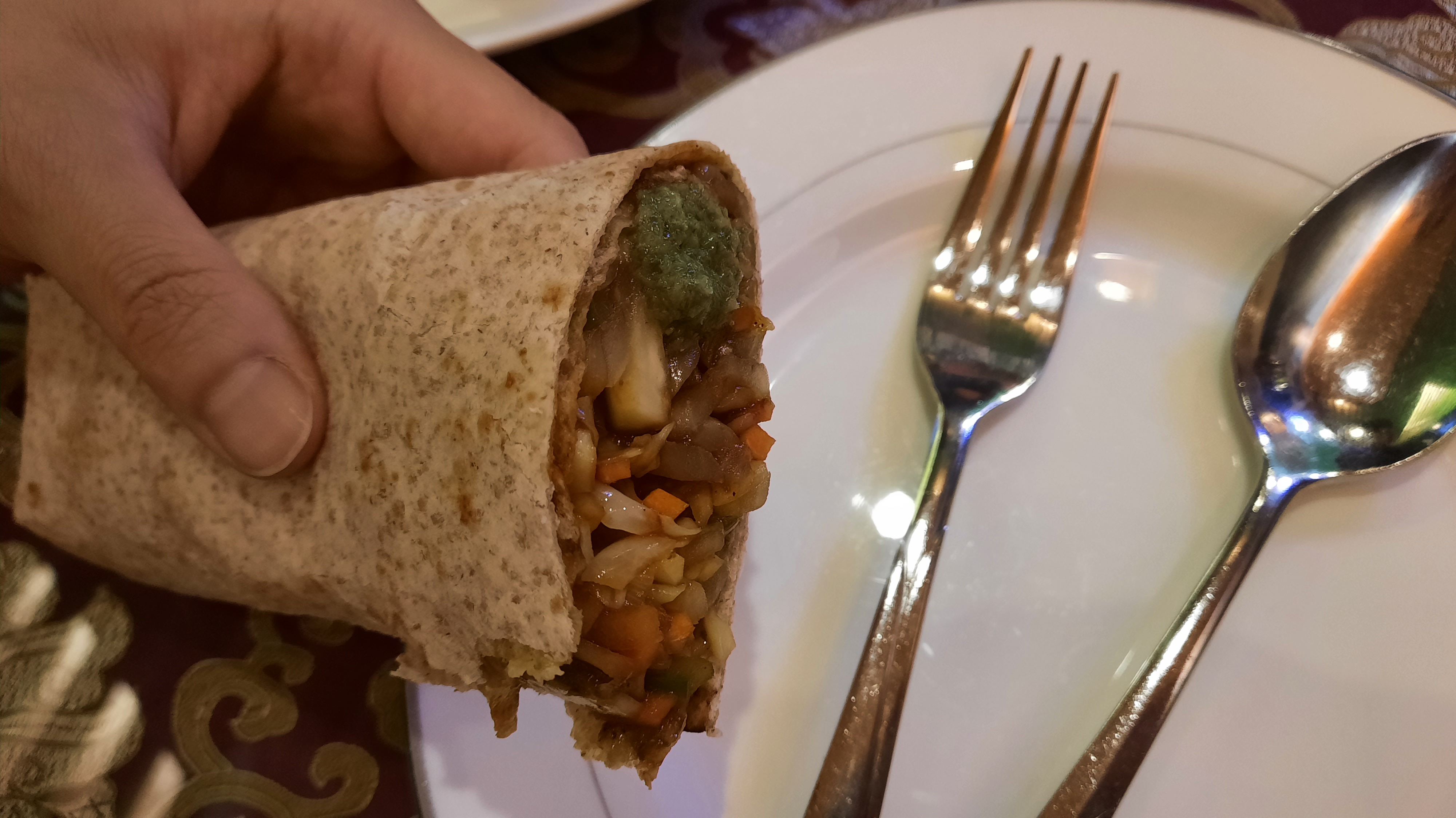 카띠롤은 제가 죠티레스토랑을 방문할 때마다 주문하는 메뉴인데 제발제발 한번만 드셔주세요!!! 부리또 비슷한 건데 밥은 없고 기름에 살짝 볶은 양배추, 당근, 피망 등 야채가 잔뜩 들어가있습니다. 숨이 완전히 죽지 않아 아삭한 식감이 남아있습니다.