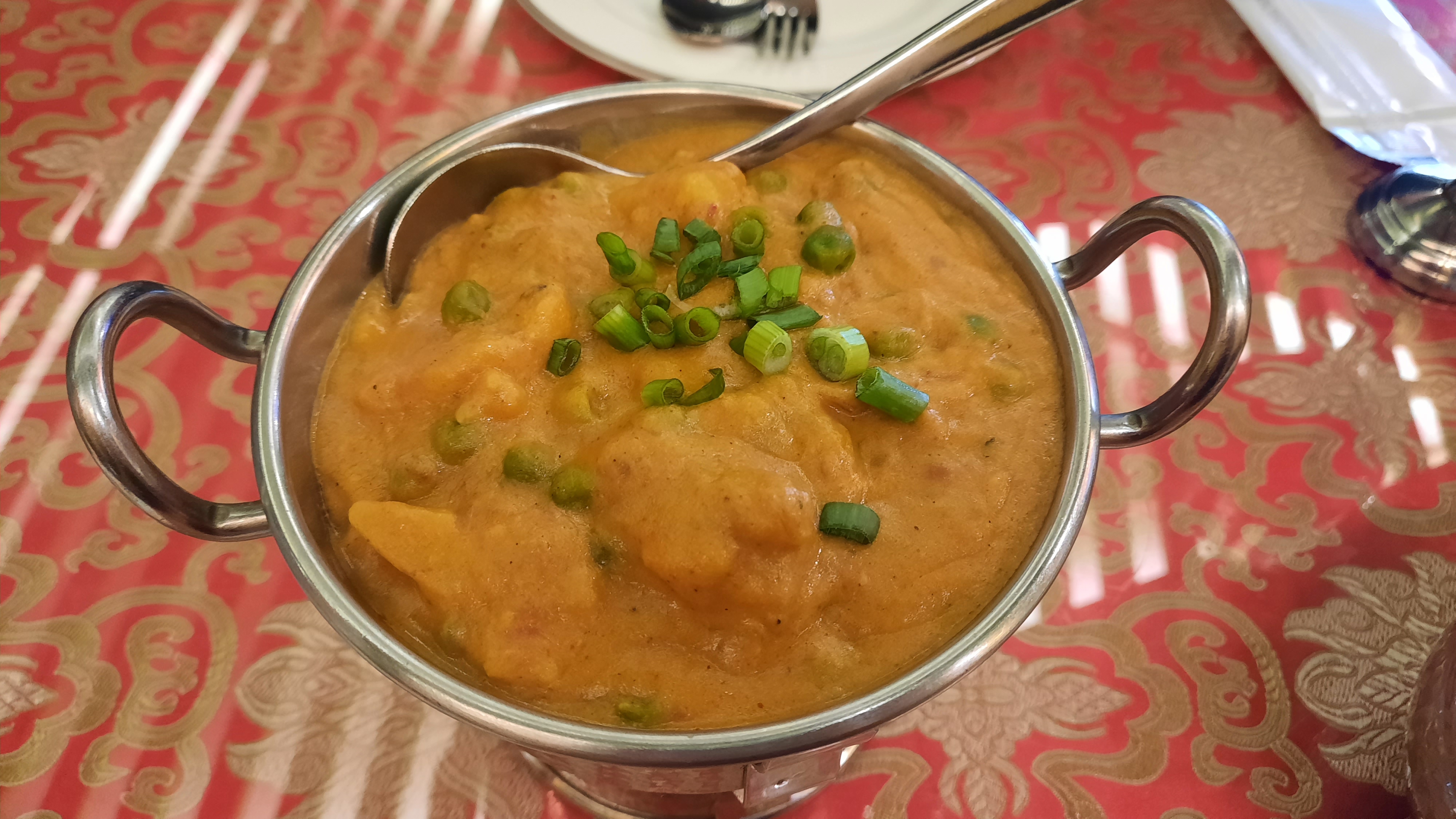 알루 바이간 마살라 이거 진짜 맛있어요. 가지를 좋아하는 분이라면 완전 추천합니다. 감자와 가지로 만든 커리인데 설명에는 매운이라는 단어가 들어가지만 맵지 않았습니다.
