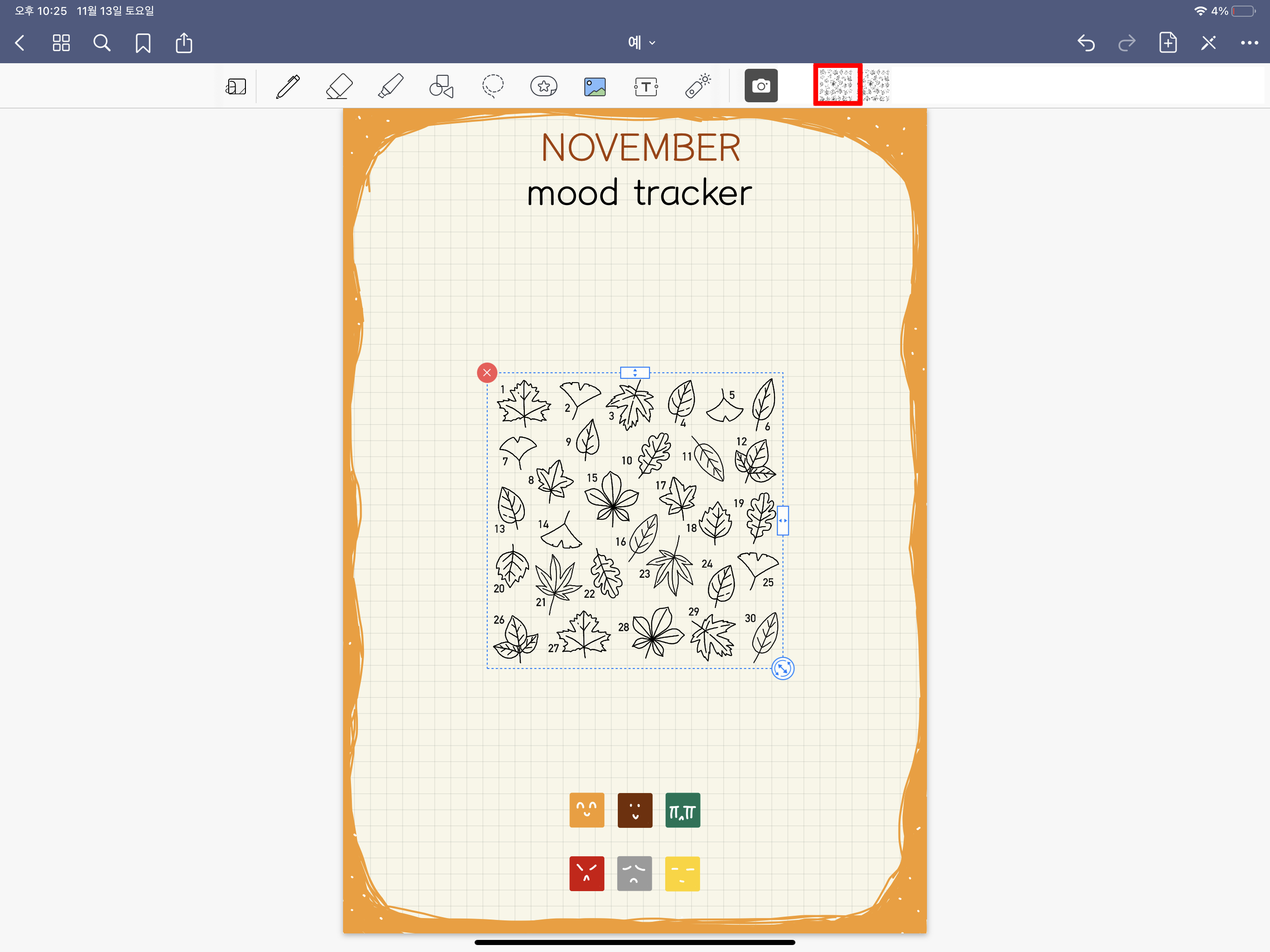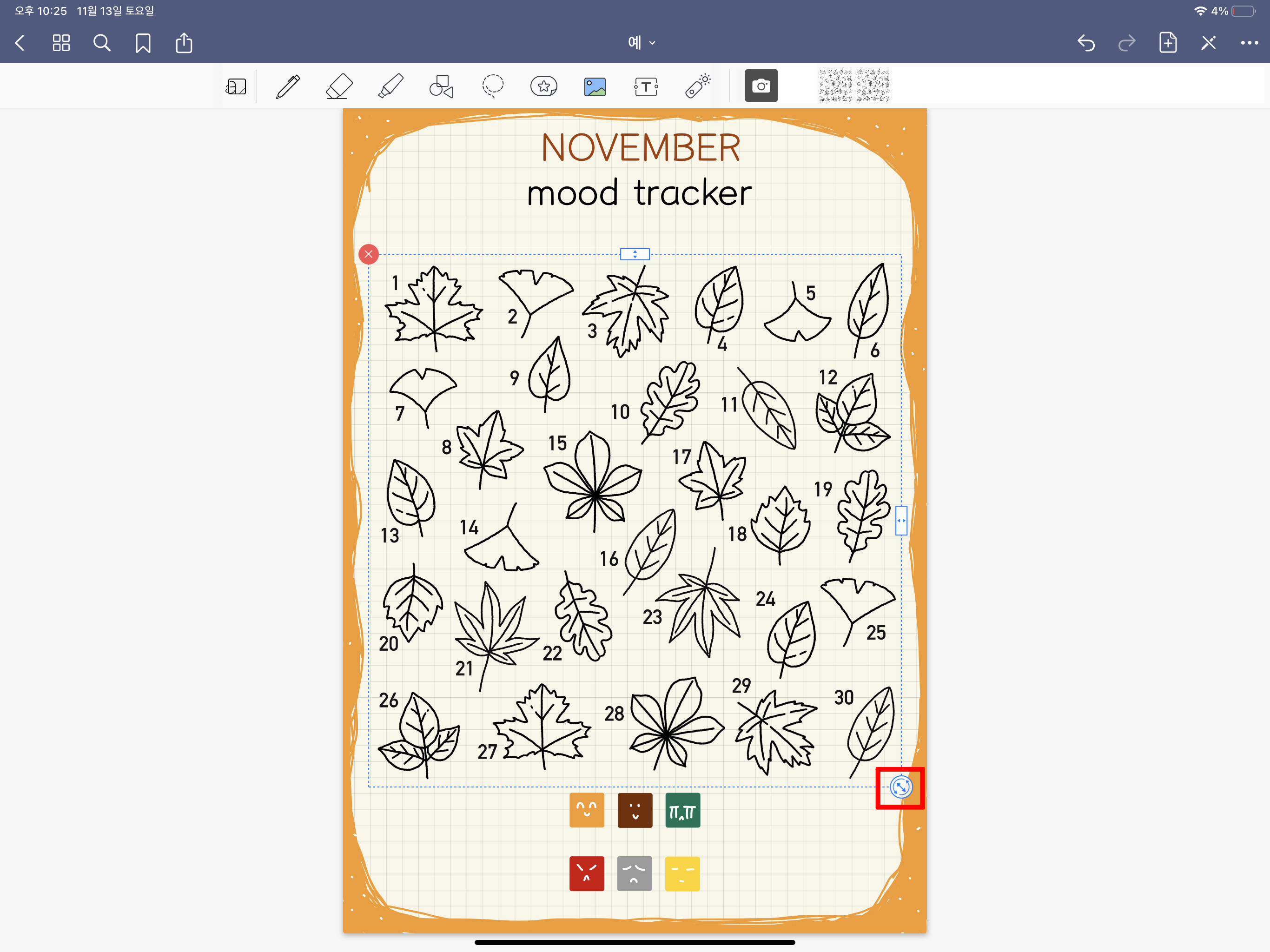 그리고 무드트래커, 해빗트래커로 사용할 수 있게 일자를 적었습니다.